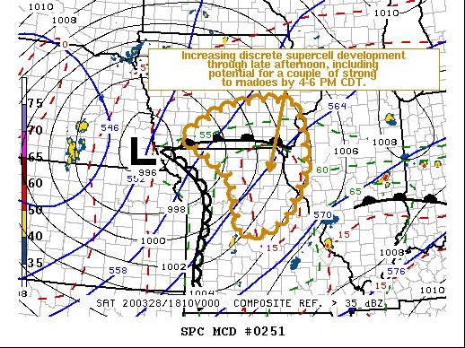 THE STRONGER STORMS. PEAK TORNADO RISK THROUGH LATE AFTERNOON