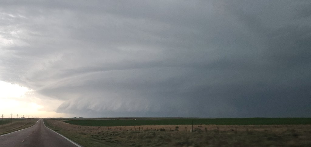Panoramic photo via iphone of the supercell that continues near Satanta, KS. 8:51 p.m. #kswx @NWSDodgeCity