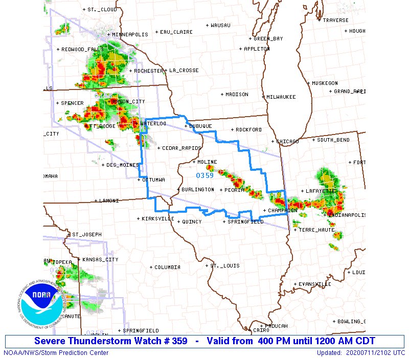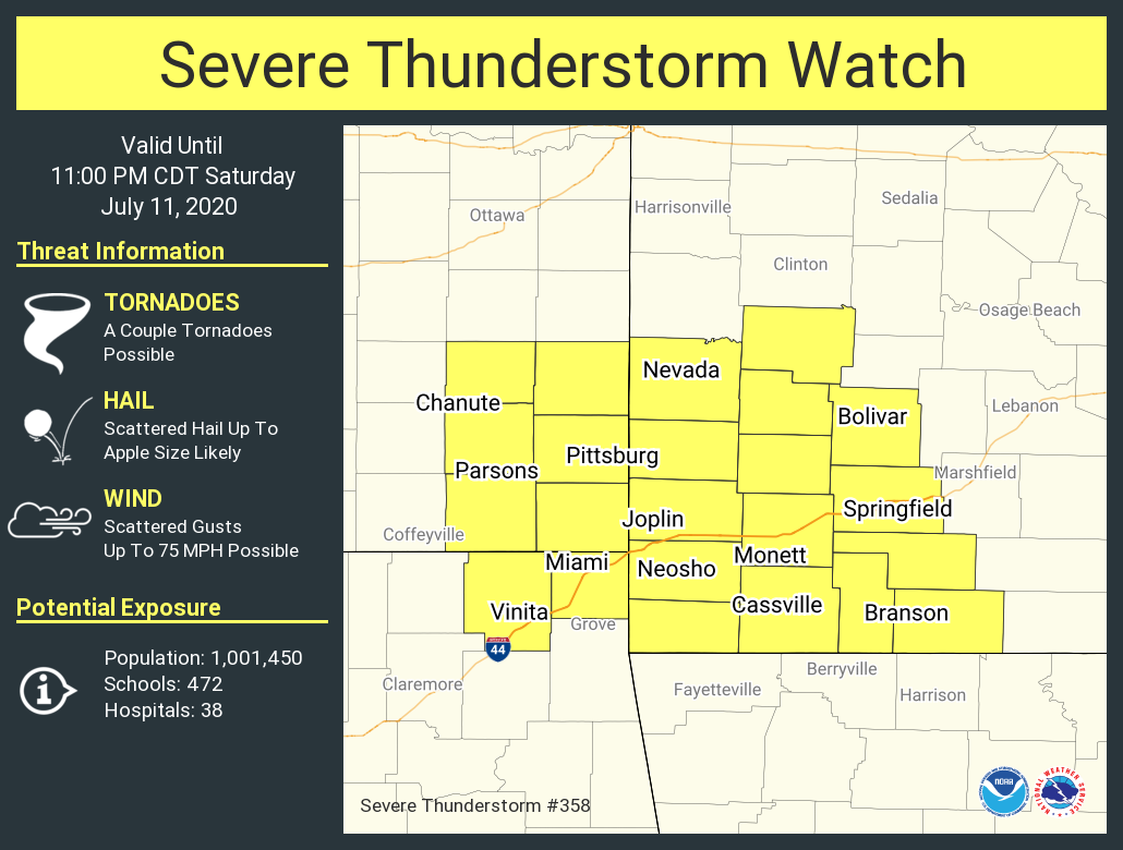 A severe thunderstorm watch has been issued for parts of Kansas, Missouri and Oklahoma until 11 PM CDT