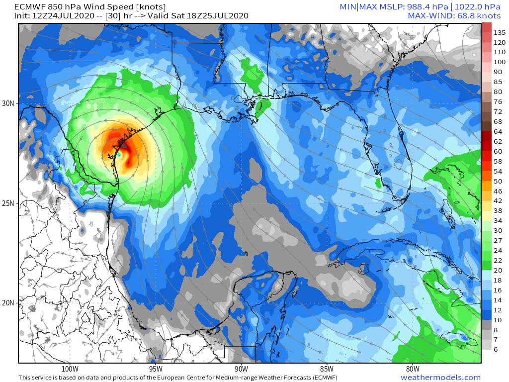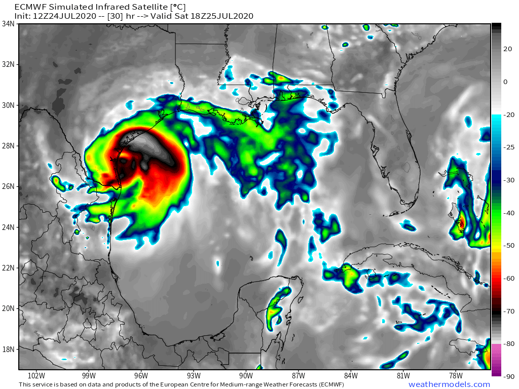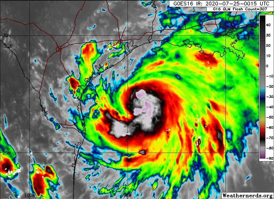 Storm #Hanna. An inner core of strong convection wrapped around the center of circulation has developed.
