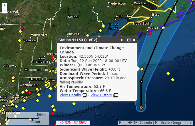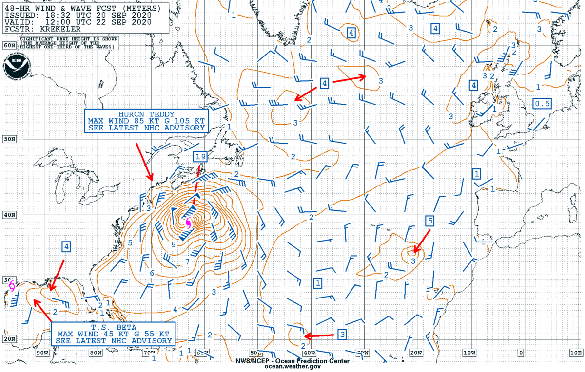 Tropical storm force winds ahead of now Post-Tropical Storm Teddy are expected over the regions, but will remain just below wind warning criteria.